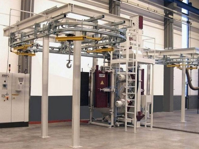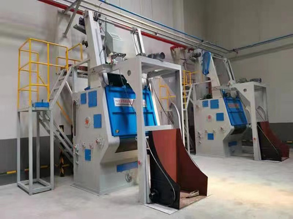 The hook shot blasting machine consists of a shot blasting and rust removal room, a bucket elevator, a separation equipment, a screw conveyor, a shot blasting m...